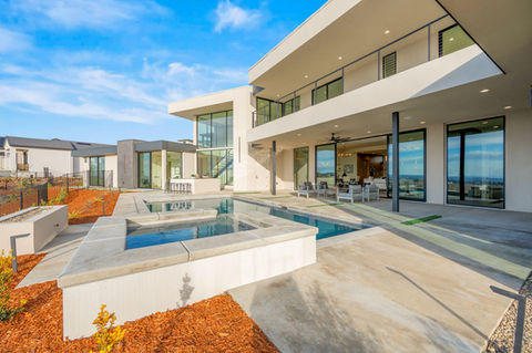 Indulge in modern luxury and panoramic lake views. This extraordinary custom home, boasting 5 beds and 4.5 baths, leaves no detail untouched. Situated in the exclusive guard-gated Serrano Country Club neighborhood, it offers unparalleled vistas of Folsom Lake. As you enter through the thoughtfully designed formal entryway, a captivating floating staircase, glass-enclosed wine wall, and architectural wall set the tone for sophistication. Floor-to-ceiling windows seamlessly connect the open living room, kitchen, and bar area, providing a continuous panorama of the Lake. The primary suite is a sanctuary with a cozy fireplace, lavish bathroom, and an expansive walk-in closet. Two additional bedrooms (or an office) on the main level offer versatile living spaces. Upstairs, two more bedrooms, 2 full baths, and a loft area add flexibility. Step out into the meticulously designed grounds, featuring a refreshing pool and integrated spa with a striking fire feature. Outdoor amenities include an outdoor shower and built-in BBQ with island seating, perfect for hosting gatherings. Crafted by the expertise of Nevezi Custom Homes, this home is slated for completion in December 2024. Renderings showcase the spaces, inviting you to envision and further personalize them to fit your preferences.